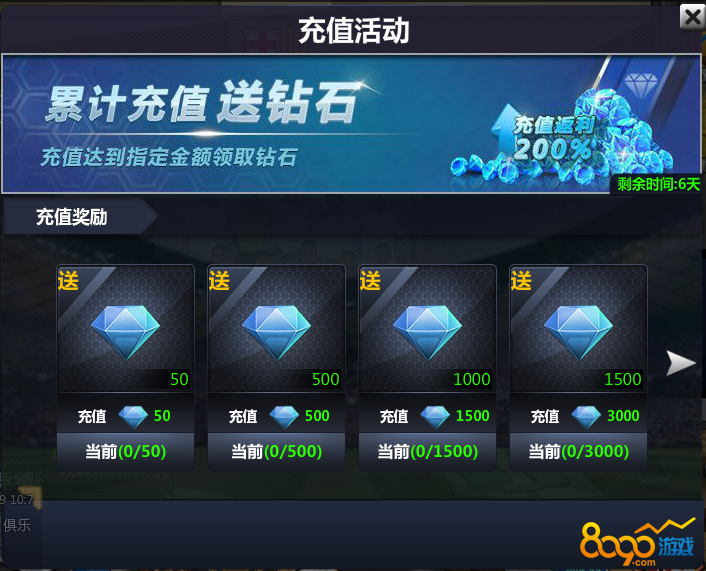 内容:玩家完成相应的充值任务,可获得丰厚的钻石奖励。