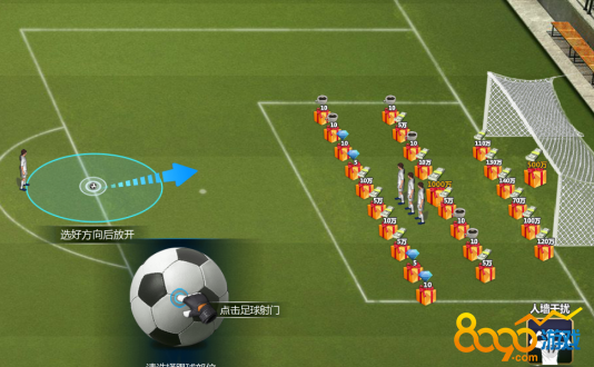 2、 达到要求后可进行任意球射门,射门线路中可获得小礼盒