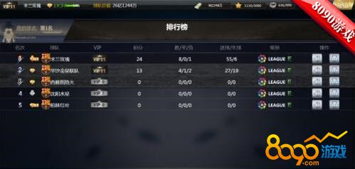在竞技体育圈里,什么地方能体现各个队伍的真正实力,那必然是各个权威的排行榜了,在8090最佳阵容网页游戏中也有这么一个排行榜,可以将自己球队以及别的球队的排名完完整整的列出来,让各个队伍都知道自己的排名,知道差距所在。