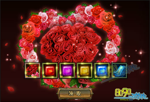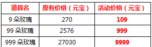 【情人超值中礼包】8888元宝:时装柜提升灵石*88、翅膀柜提升灵石*88、99朵玫瑰*1、经验玉(超)*1;