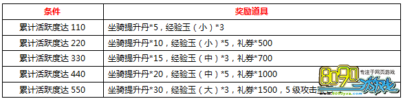 【活动内容】活动期间每天可通过活动界面完成各项活跃项目获得活跃度,整个活动期间活跃度累计达到制定数量即可获得相应奖励!