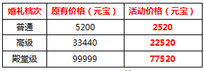 【活动内容】在此期间选良辰的玩家,均可获得额外送出的婚缘福利礼包。(通过邮件发放)