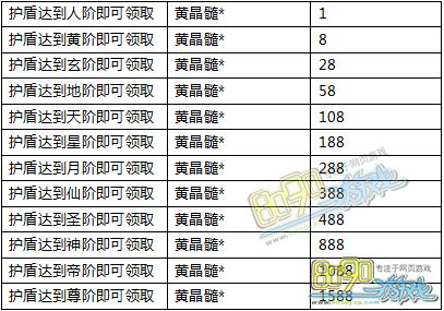 【活动内容】活动时间内,玩家护盾等级达到指定阶数即可领取相应奖励。