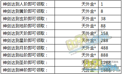 【活动内容】活动时间内,玩家神剑等级达到指定阶数即可领取相应奖励。