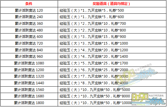 【活动内容】活动期间每天可通过活动界面完成各项活跃项目获得活跃度,整个活动期间活跃度累计达到制定数量即可获得相应奖励!
