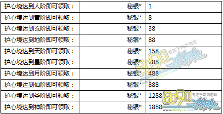 【活动内容】活动时间内,玩家护心境达等级达到指定阶数即可领取相应奖励。