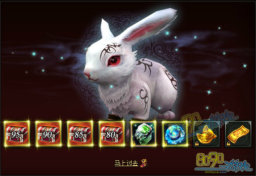 【活动内容】活动期间超级BOSS-【魔兔】在每天10、12、14、16、18、20六个整点时间刷新在土城(160,200),【魔兔】携带了大量高级装备、元宝、时装柜提升灵石,还等什么?让我们一起去看看(注:活动时间总共15天)