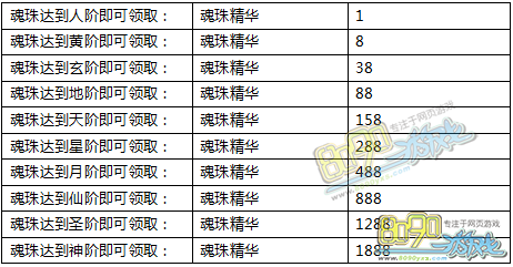 【活动内容】活动时间内,玩家魂珠达等级达到指定阶数即可领取相应奖励。