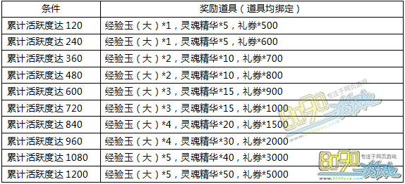 【活动内容】活动期间每天可通过活动界面完成各项活跃项目获得活跃度,整个活动期间活跃度累计达到制定数量即可获得相应奖励!