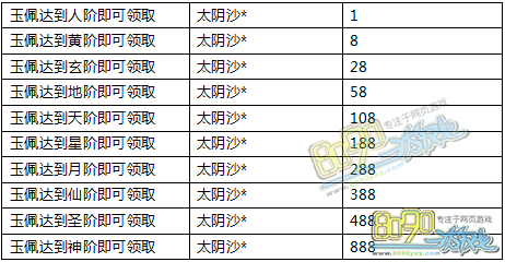 【活动内容】活动时间内,玩家玉佩等级达到指定阶数即可领取相应奖励。