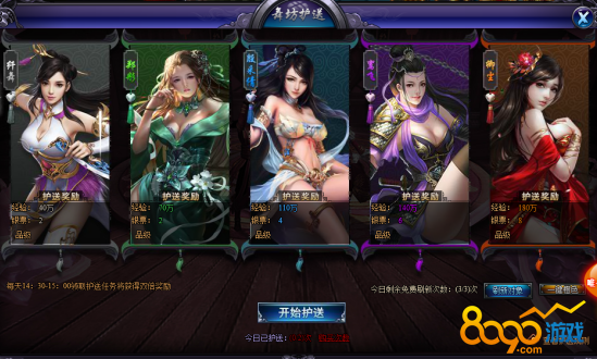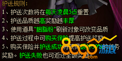 不过,高收益的同时也伴随高风险,该时间段也会有很多人打劫,能不能保护好美娇娘就看各位少侠的实力了,担心被劫在给大家介绍个好东西,保险!购买保险,若成功护送多得额外50%收入,若失败,不用急,也可以获得正常奖励哦!