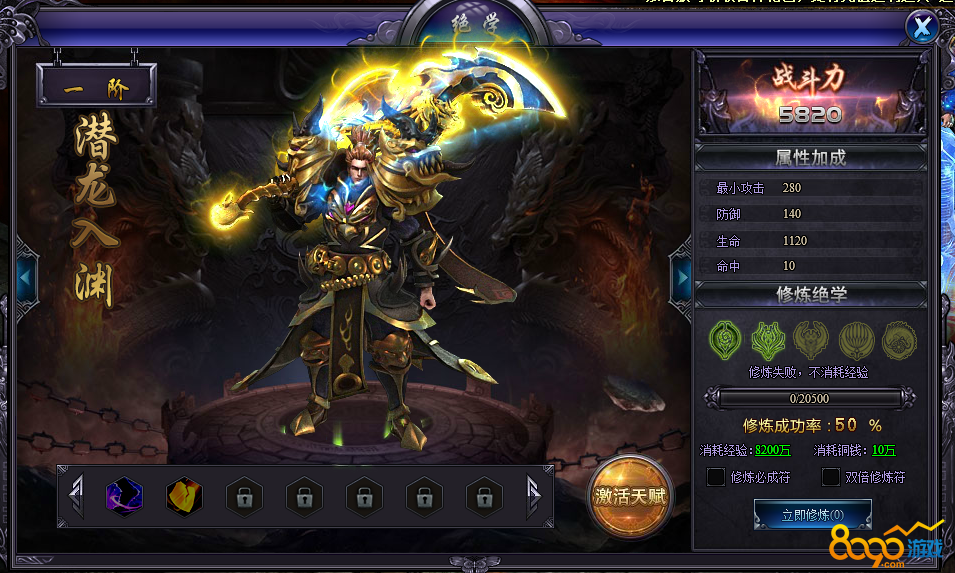 绝学是当人物达到85级时可以学习的系统。绝学初始属性加成:最小攻击+280,防御+140,生命+1120,命中+10,,每个职业可以学习8中不同属性的隐藏天赋技能,三个职业不同技能,没有最强玩家,有的只是最强的操作,不仅有属性加成以外,激活绝学可以拥有独立外形,金光护体,脚底光环。那些绝学应该通过什么样的方式去提升呢。绝学每天只能修炼五次,没修炼一次需要8200万的经验和消耗铜钱10万,如果修炼失败之后将不会消耗经验,如果想要提升修炼的成功率的话,可以使用修炼必成符和双倍修炼符,这样每天的五次绝学修炼的机会就不会浪费了,从而自身的属性和技能属性都会有大幅度的提成。