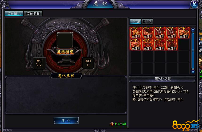 搜索"8090网页游戏"装备魔化是醉玲珑刚更新的一个系统,装备得到魔化以后可以大幅度提升角色的属性,当然了装备魔化也是有要求的,那么具体的是要求是什么呢?