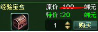 还可以购买一个经验宝盒带在身上,打怪可以获得额外经验,升个几级获得的经验也够再升一级的了。