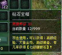 而钻石宝箱就更厉害了,之前所提到的七级宝石,就是在钻石宝箱中有机会开到的!各种装备以及强化石和宝石。