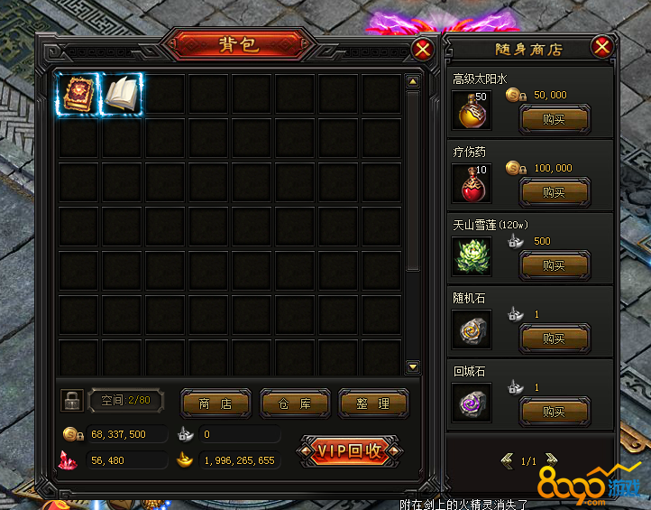 今天给大家介绍下8090《战神霸域》游戏中太阳真火可以通过学习太阴真火技能书如何获得!