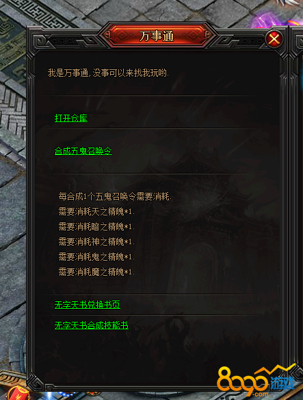 2、在卧龙城万事通处可以通过使用30个无字天书合成太阴真火技能书