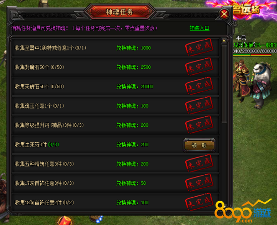 神器、神甲:可以获得海量属性加成,并且具有炫酷外观,可以通过神魂升级,神魂完成日常收集任务可以获得
