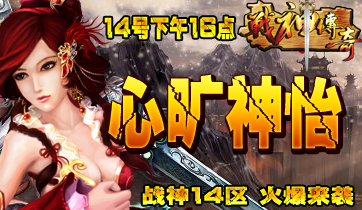 战神传奇全新版本双线“心旷神怡”将于4月14下午16点火爆开启,欢迎各路英雄请火速进驻,共同体验万人在线传奇竞技的快感!