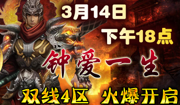 3月14日下午18:00火爆开启,欢迎各路英雄请火速进驻,共同体验万人在线传奇竞技的快感!
