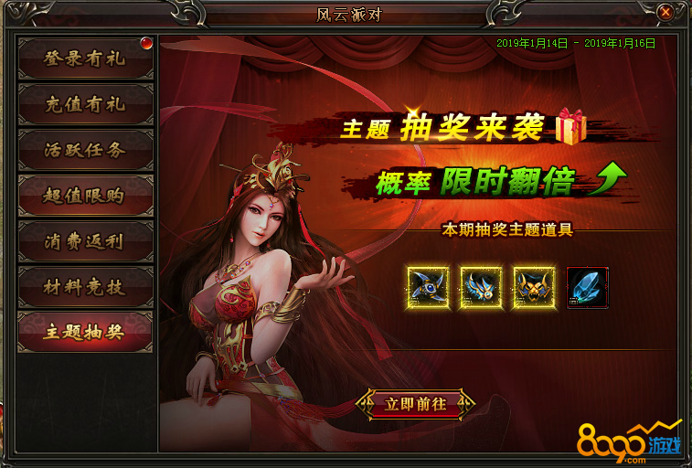 7. 主题抽奖:活动期间,抽奖的奖池变为特殊奖池,产出三界玄晶,更产出神威三界套装。