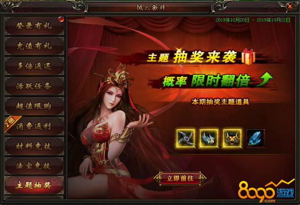 9. 主题抽奖:活动期间,抽奖的奖池变为特殊奖池,产出三界装备和三界玄晶