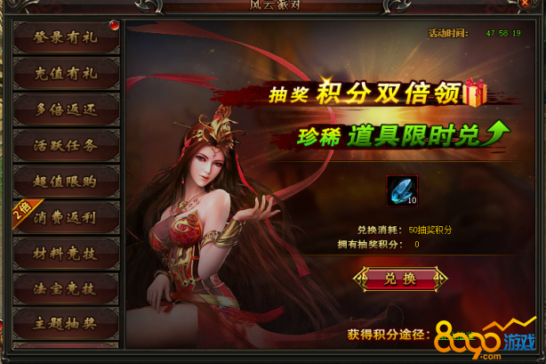 10. 双倍抽奖积分:活动期间,抽奖可得双倍抽奖积分,积分可用于兑换三界玄晶