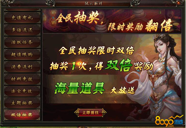 9. 主题抽奖:活动期间,抽奖的奖池变为特殊奖池,产出三界装备和三界玄晶