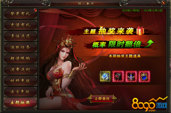 9. 主题抽奖:活动期间,抽奖的奖池变为特殊奖池,产出魔符装备和特戒