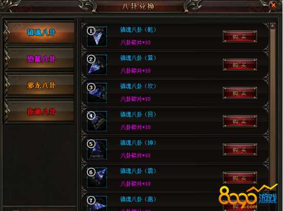 1. 通过击杀BOSS获得八卦。