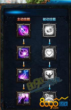 答:主动技能分为4种,连续两次攻击型群攻,爆发致命型单攻,群体攻击法阵,治疗。