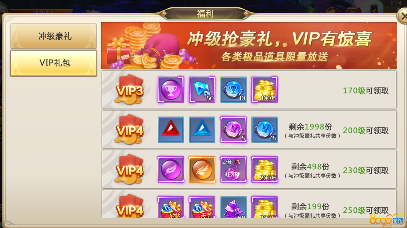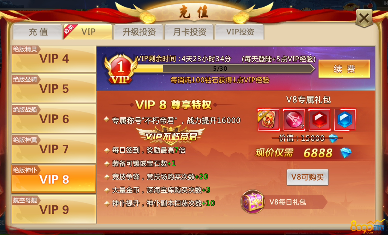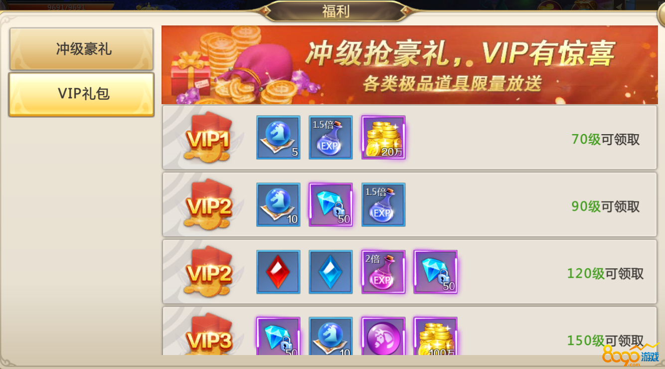 8090诸神国度VIP等级是经验升级必买的东西,那么VIP每档价格是多少,都有哪些特权以及礼包奖励,一起来看看吧!