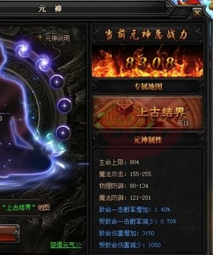 获得元气,玩家即可激活、升级元神了。升级元神将提升角色生命上限、职业攻击、物理防御、魔法防御属性,致命一击概率将增加,受致命一击概率将减少,致命伤害值将增加,受致命伤害值将减少。
