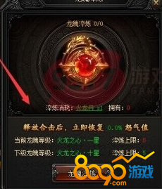 龙魄淬炼得越多,那么恢复怒气值的百分比也会随之提高。龙魄淬炼次数上限受到龙魄等级的影响。玩家提升龙魄等级即可提升龙魄淬炼次数。龙魄淬炼界面,玩家可查看个人累计已淬炼次数以及当前淬炼次数上限。