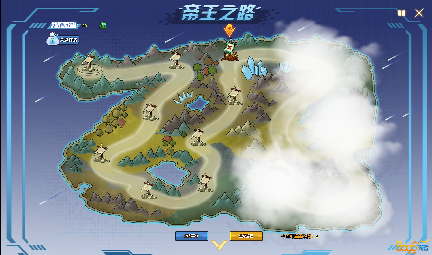 通关产生的声望可以在声望商店中兑换稀有英雄和部分道具