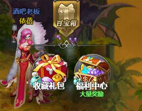 1、登陆进入游戏,点击右上方“百宝箱”按钮,会出现“福利中心”