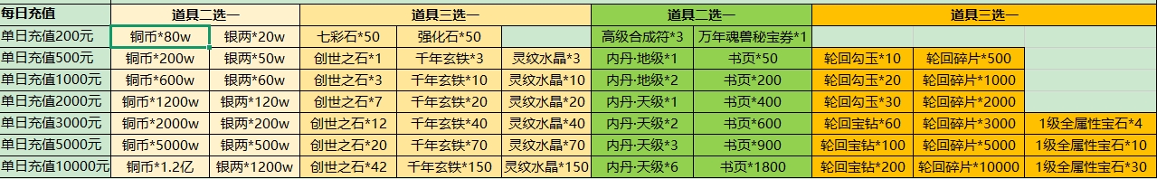 每日礼包按实际充值订单金额计算,游戏内红包均不计算。礼包可组合申请,当日充值需第二日申请