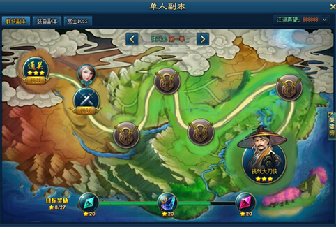 5、通过该章节所有关卡后能够招揽一个对应的侠客。