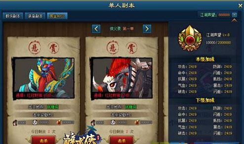 领取赏金任务,打倒为害一方的BOSS,40级以下的江湖青年不能领取赏金任务,所以在领取任务之前,要好好衡量一下自己的实力。