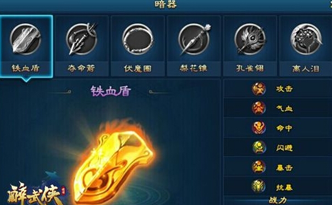 醉武侠中的暗器,还是有很多种的哟,在关键时刻可是可以救人于水火之中的哈,今天就来快快铁血盾的属性如何吧。
