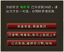 你的好友已升级到36级,请给对方发一句话,你同时获得奖励。