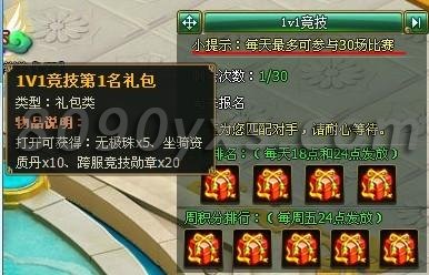 2、只要玩家在竞技中达到一定的成绩,就会有相应的礼包送出,分别是第1名、第2-10名、第11-50名、第51-100名,另外还有周排行礼包等,礼包可是一个好东西啊,装备,炼化,宝石等样样都有。