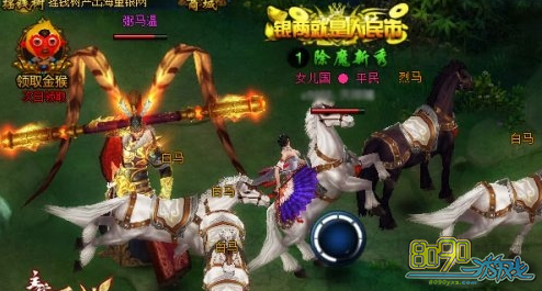 进入弼马温副本之后,可以看到有白马、烈马(棕色)、弼马温,玩家可以随意捕获一匹白马进行驯服,驯服白马需要在规定的时间内完成3次驯服才行。