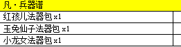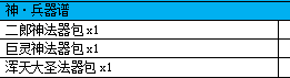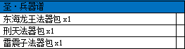 以上5中兵器谱均为3选1法器包,法器包打开获得该法器包对应神将的两个法器
